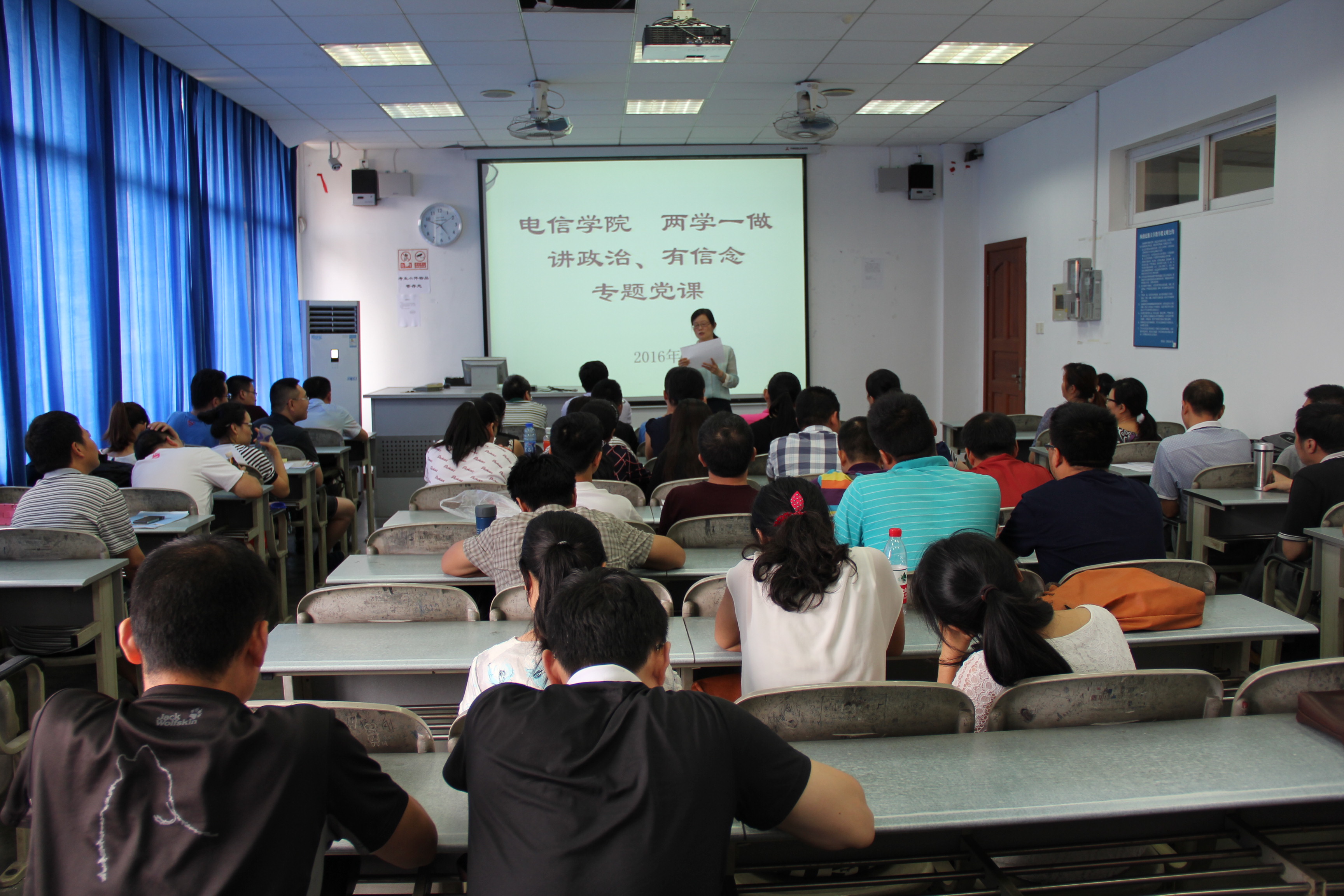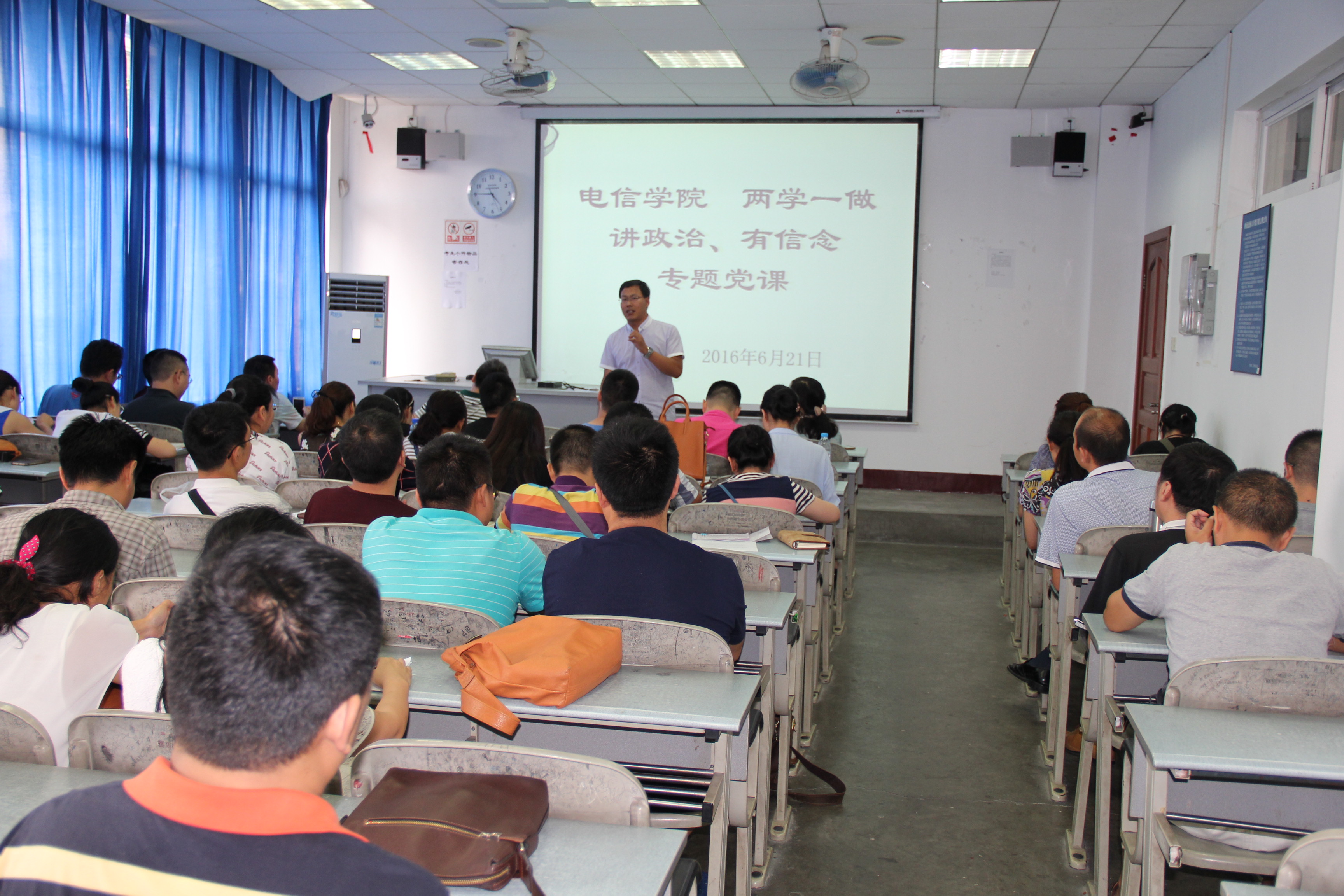 6月21日下午,电信学院“两学一做”——“讲规矩、有纪律”专题学习交流会在武侯校区1教412教室举行。学院全体教师参加此次会议,大会由学院党务工作负责人、二级纪委书记主持。