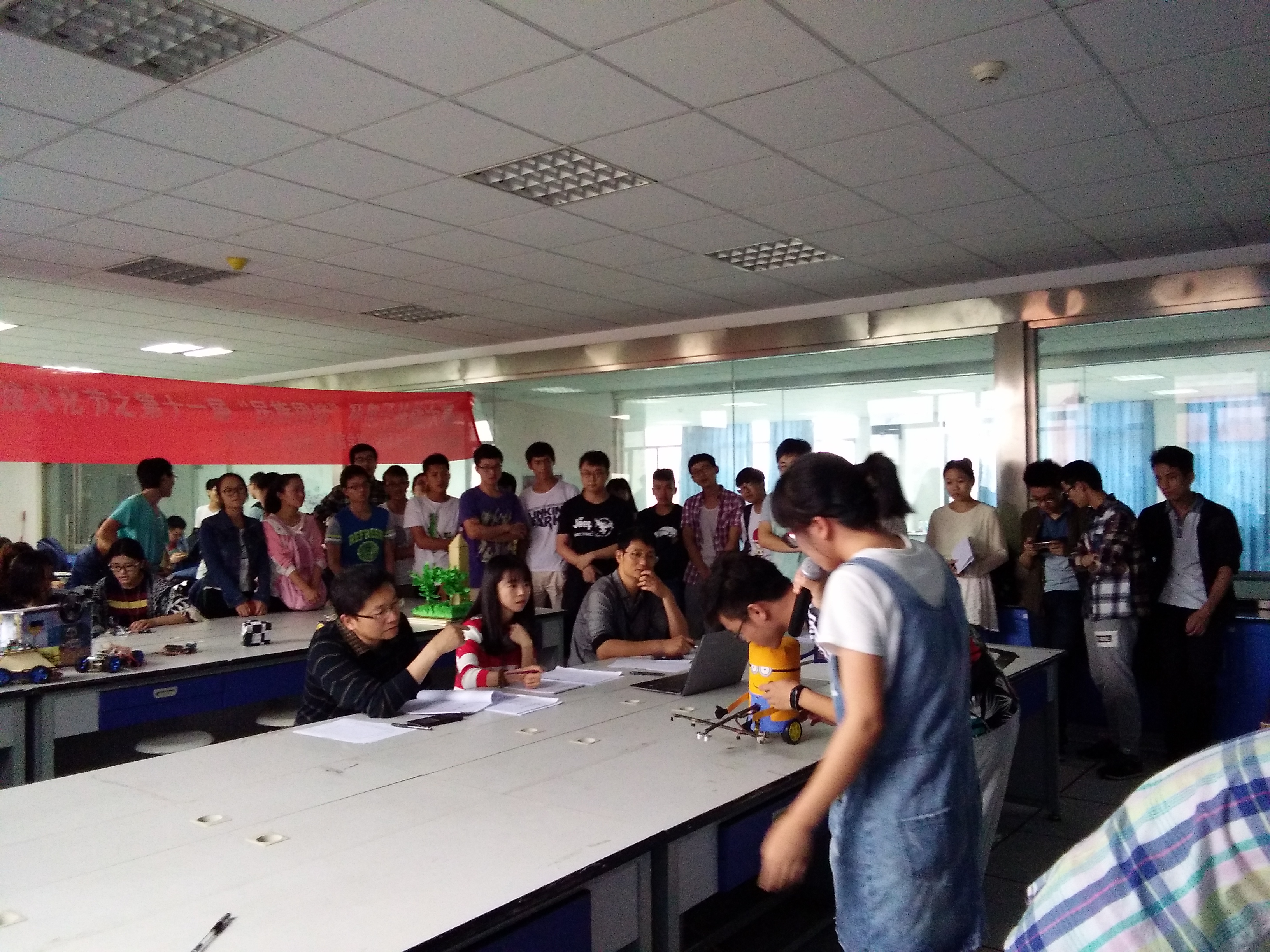 比赛分初、高级组,从2016年4月19日至5月10日,共有14组39名成员利用MSP430单片机的实验箱、嵌入式技术等技术手段完成作品。作品包括:多功能计步器,多功能智能小车,计时器,健身房无线温控节能风扇和报警系统等等。各组选手的作品创意新颖,做工严谨,贴近生活,应用型强。
