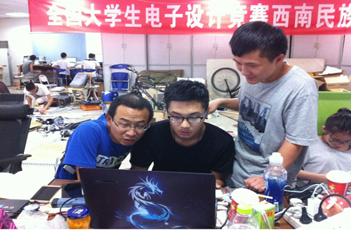 8月9日,2017年(第十二届)全国大学生电子设计竞赛题目正式开始,顶着高温酷暑天气,由电信学院师生组成的西南民族大学电子设计竞赛团队在武侯校区第一实验楼400室已备战1月有余,学院领导多次到培训现场进行指导工作。