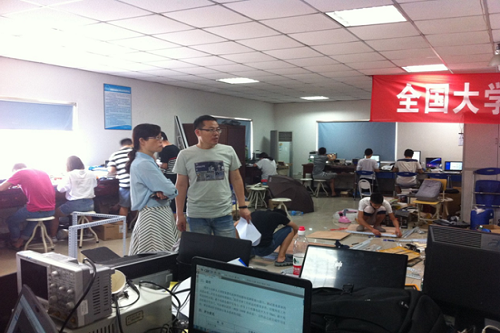 本次比赛共计选派了19组学生参加,每组3人,竞赛规则要求整个竞赛过程处在半封闭式实验室中进行,参赛学生将从8月9日上午8时公布题目开始,一直到8月12日晚上8时,持续时间为四天三夜。每组学生根据自己选定的题目,要求在规定时间内完成方案设计、选购器件、电路设计制作、程序编写、系统调试和报告撰写,比赛结束提交作品实物和报告。在这段充实而又紧张的84小时里,参赛学生不仅要把几年来学到的理论知识、实践操作和开发经验用到竞赛作品设计过程中,而且也要培养自身细心认真的学习态度、团队合作的精神、建立乐观的心理素质。